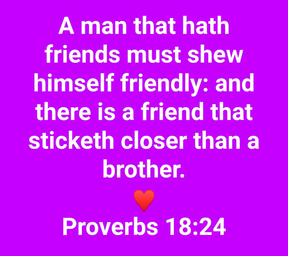 **Proverbs 18:24 A man that hath friends must shew himself friendly: and there is a friend that sticketh closer than a brother.