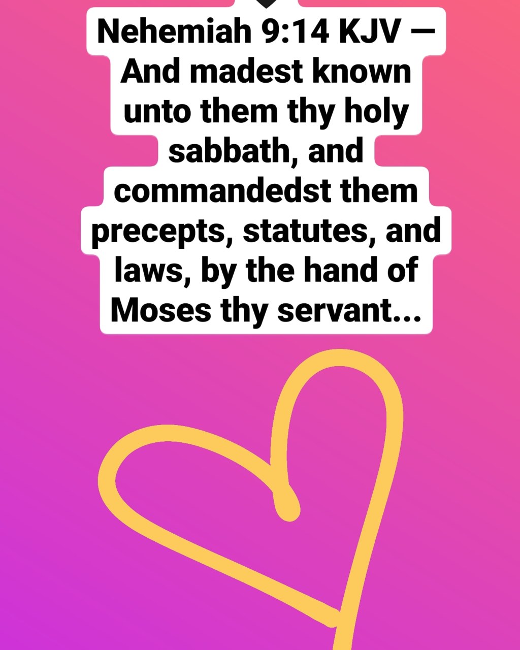 🖤Nehemiah 9:14 KJV — And madest known unto them thy holy sabbath, and commandedst them precepts, statutes, and laws, by the hand of Moses thy servant…🖤 Beloved , I pray you know that The teachings of Moses, are the same as the teachings of Christ. Who do you think He got them from ? Christ , isn’t new testament , Christ is the word of The Most High God. He is Genesis to Revelations. He is every commandment and teaching , and covenant He is precept upon precept , He is truth, the truth that is ever lasting , and part of the truth of Christ , is Sabbath, He observed this day, His disciples observed this day, and His apostles observed and taught on this day, The bible never instructs us against the laws of Moses but AGAINST the laws of the flesh. And the only law nailed to the cross with our redeemer Christ , was the law that marked us for death. But by His death, and resurrection we were given grace and redemption. Not to continue in our sinful ways but to walk in fervent faith, and I pray we do it . I pray we choose to walk according to the bible even though the world sees it as an abomination even though religion says it is irrelevant , even though our flesh wants temporary satisfaction. I pray beloved we choose Eternal satisfaction, we choose to suffer now so that we may dance in joy and peace later. I pray we learn from the Israelites in the bible ,