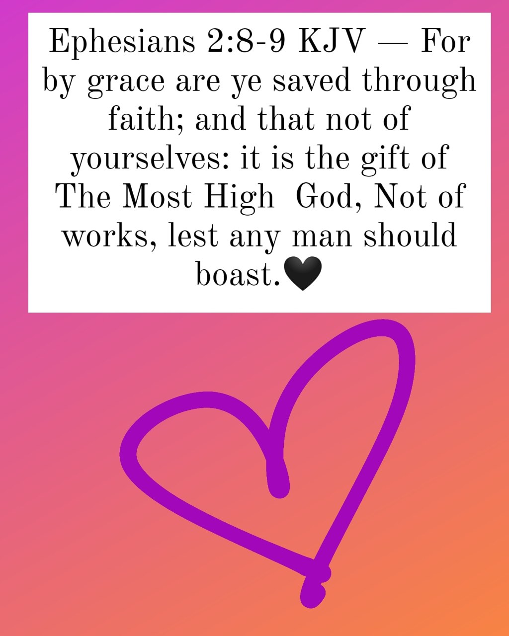🖤Ephesians 2:8-9 KJV — For by grace are ye saved through faith; and that not of yourselves: it is the gift of The Most High God, Not of works, lest any man should boast.🖤
