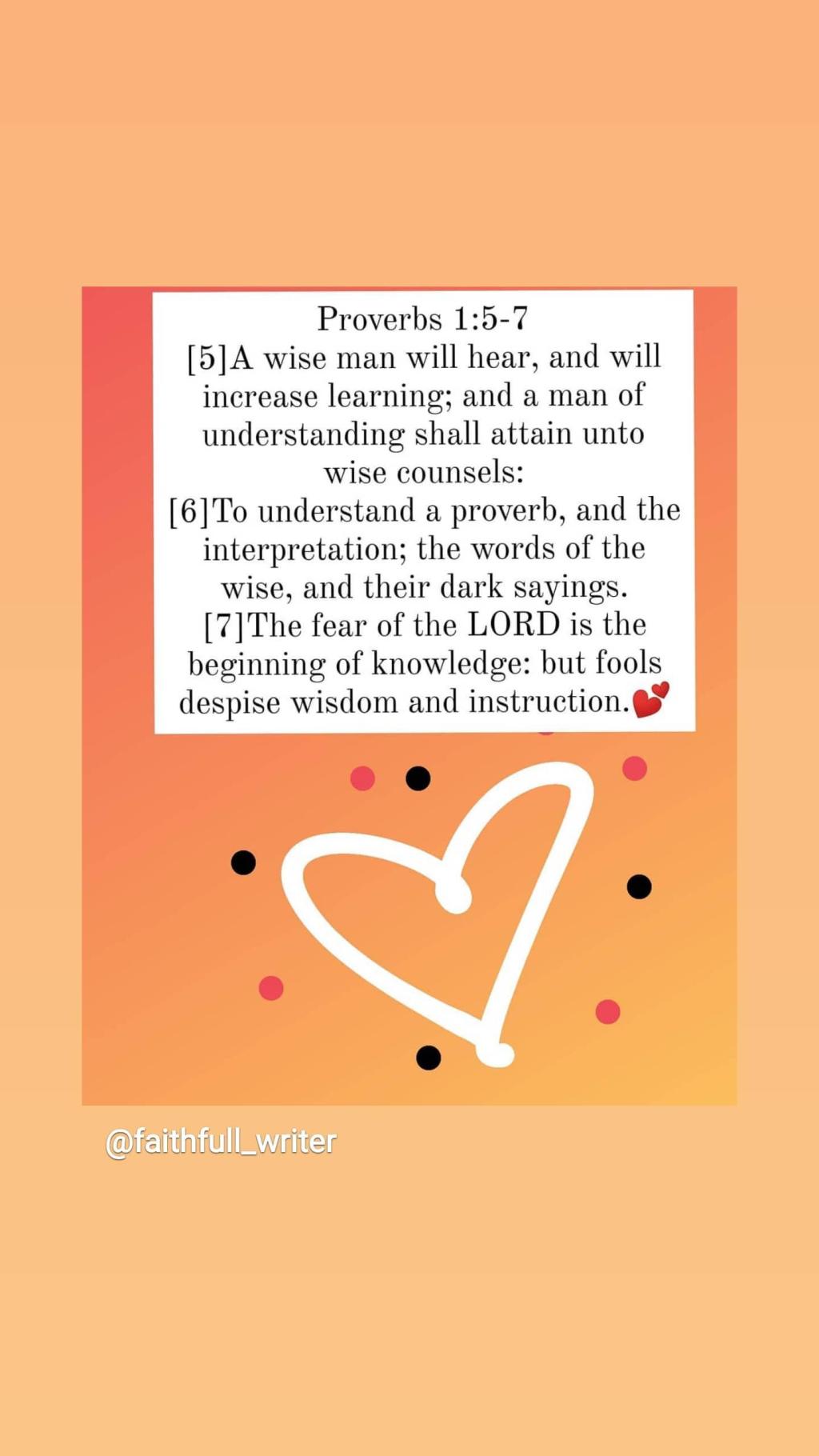[7]The fear of the LORD is the beginning of knowledge: but fools despise wisdom and instruction.💕