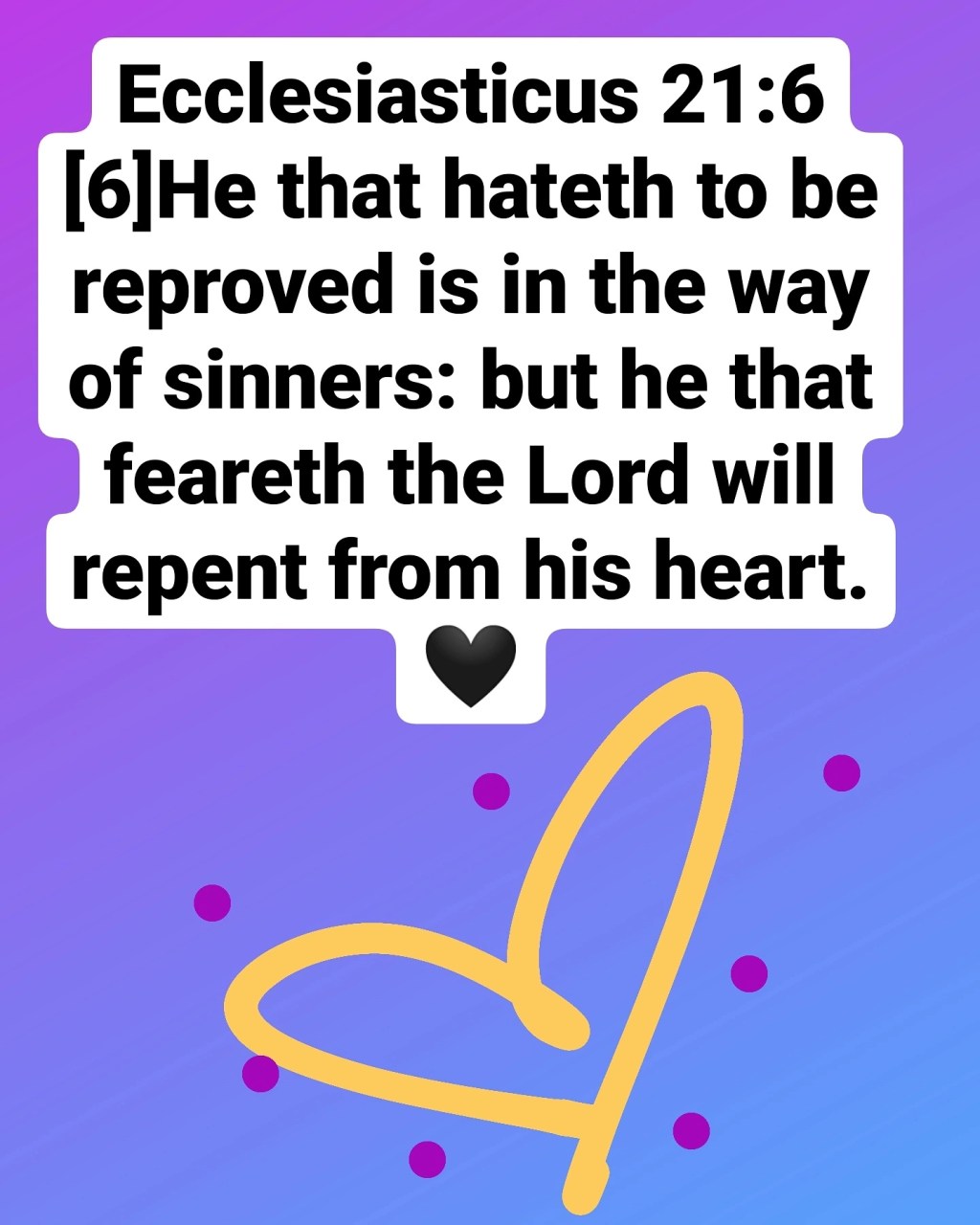 đź–¤Ecclesiasticus 21:6[6]He that hateth to be reproved is in the way of sinners: but he that feareth the Lord will repent from his heart.đź–¤