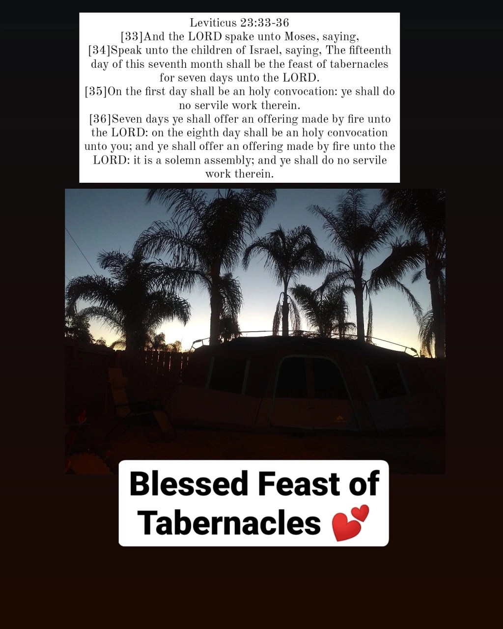 Beloved , Feast of Tabernacles starts at sunset. I will be away from my phone as I fellowship with the body of Christ and dwell in tabernacles. I will still post devotionals at