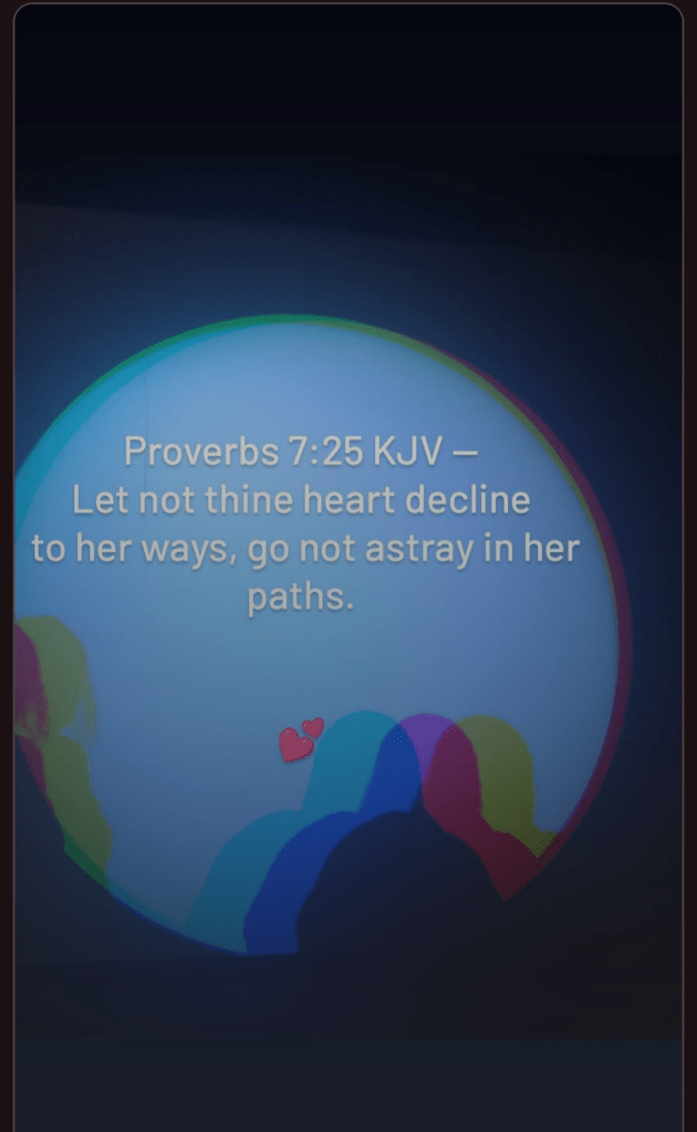 Proverbs 7:25 KJV — Let not thine heart decline to her ways, go not astray in her paths.🖤