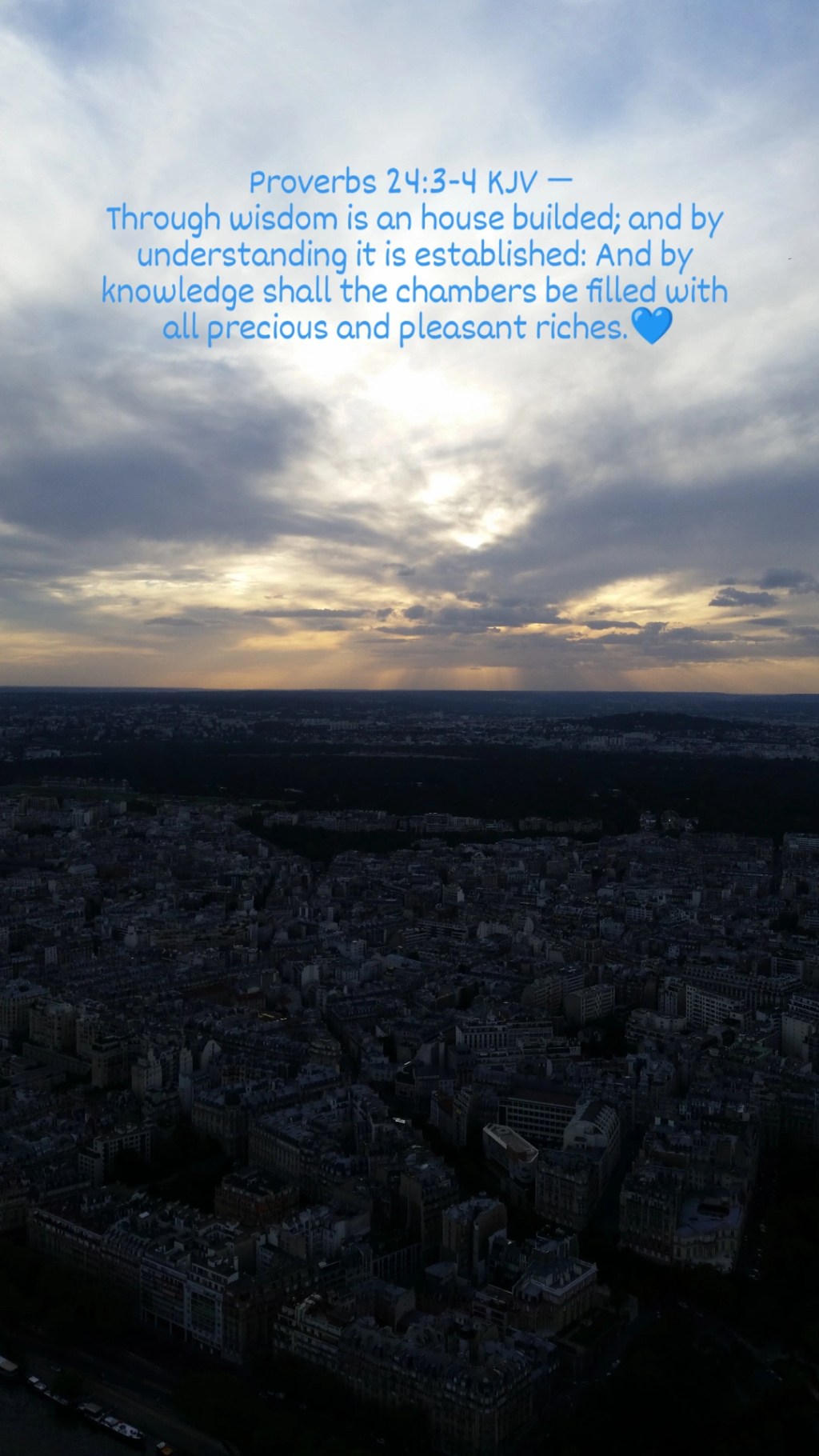 Proverbs 24:3-4 KJV — Through wisdom is an house builded; and by understanding it is established: And by knowledge shall the chambers be filled with all precious and pleasant riches.💙