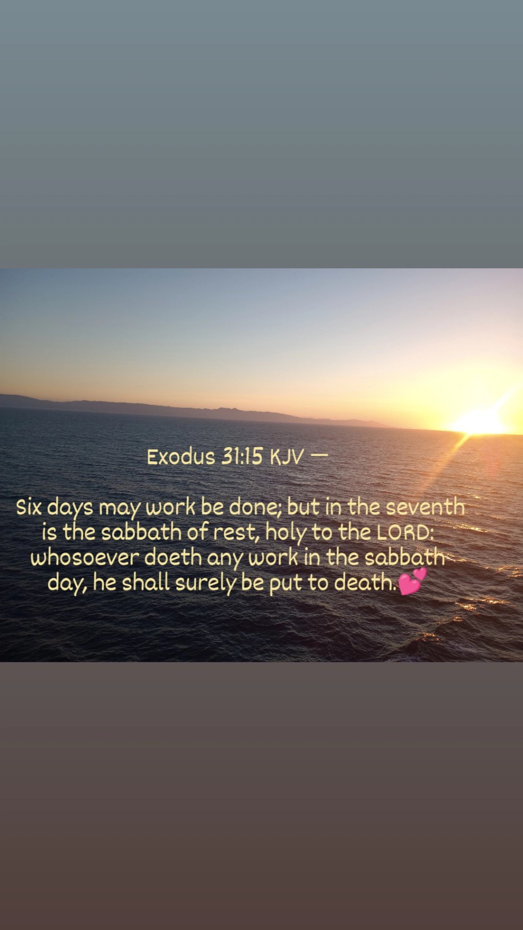 Six days may work be done; but in the seventh is the sabbath of rest, holy to the LORD: whosoever doeth any work in the sabbath day, he shall surely be put to death.đź’•