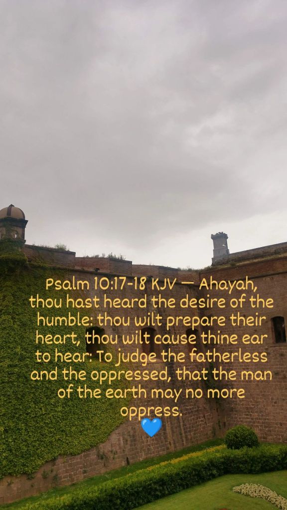 Psalm 10:17-18 KJV — Ahayah, thou hast heard the desire of the humble: thou wilt prepare their heart, thou wilt cause thine ear to hear: To judge the fatherless and the oppressed, that the man of the earth may no more oppress.💙