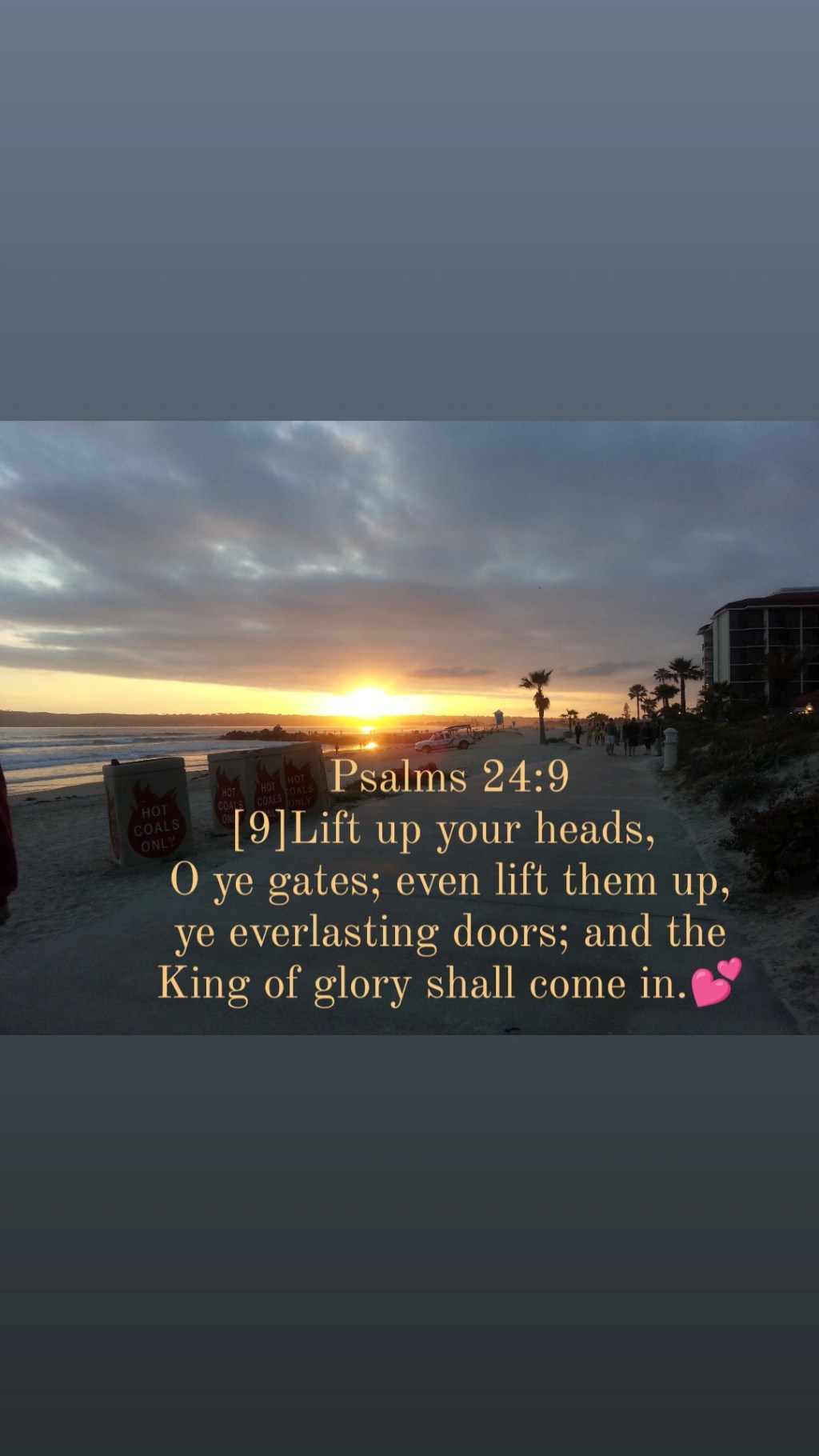 [9]Lift up your heads, O ye gates; even lift them up, ye everlasting doors; and the King of glory shall come in.💕