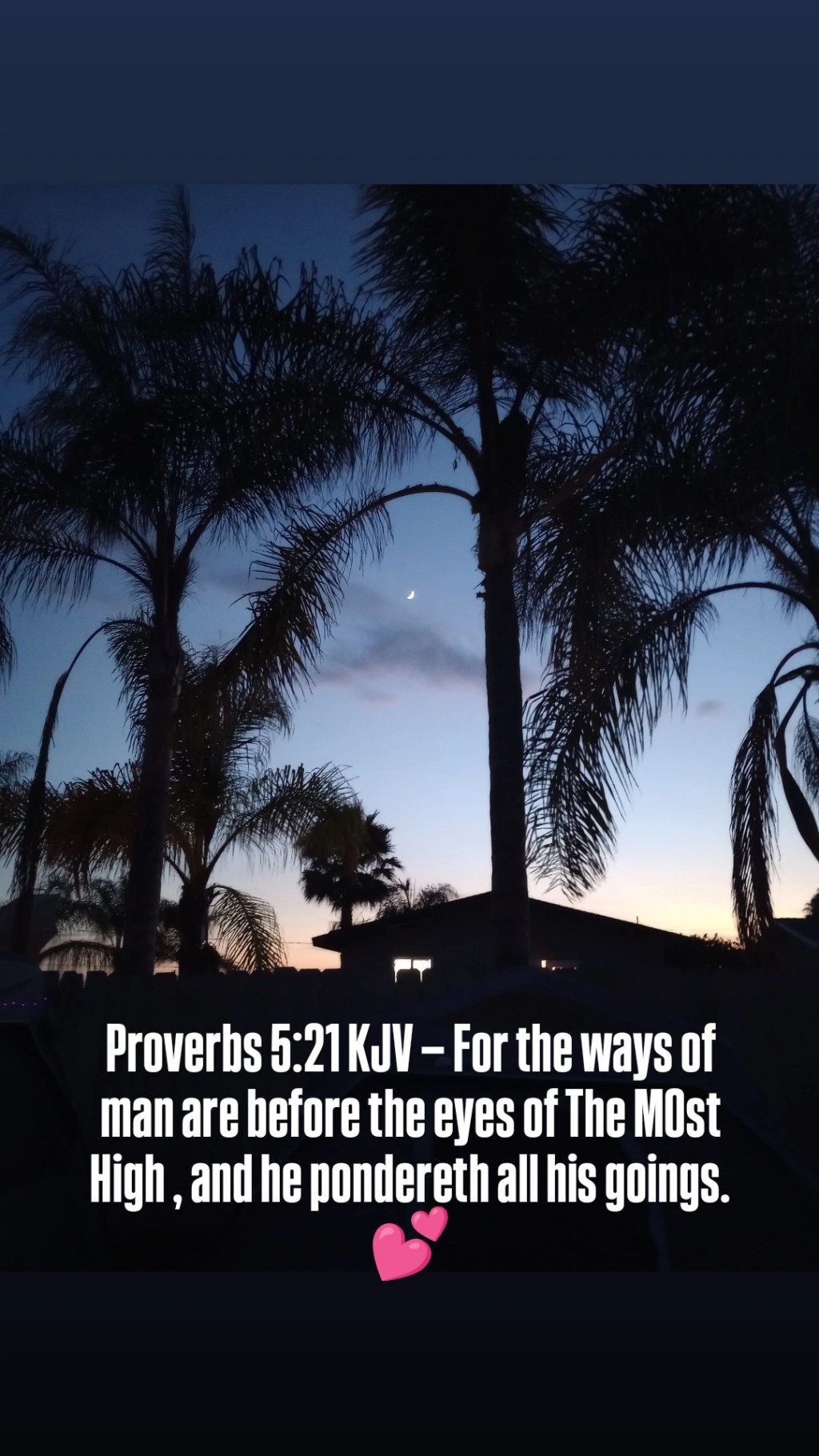 Proverbs 5:21 KJV — For the ways of man are before the eyes of the LORD, and he pondereth all his goings.💕
