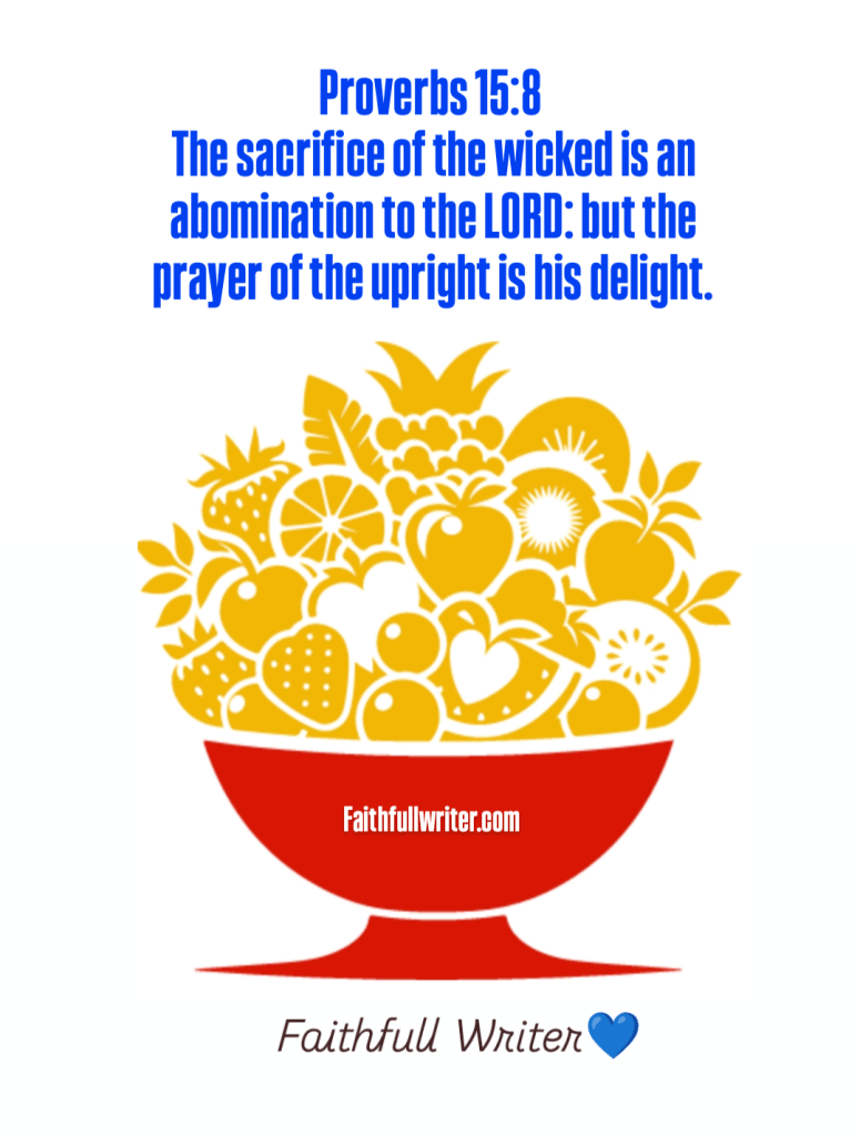 Proverbs 15:8 KJV — The sacrifice of the wicked is an abomination to the LORD: but the prayer of the upright is his delight.
