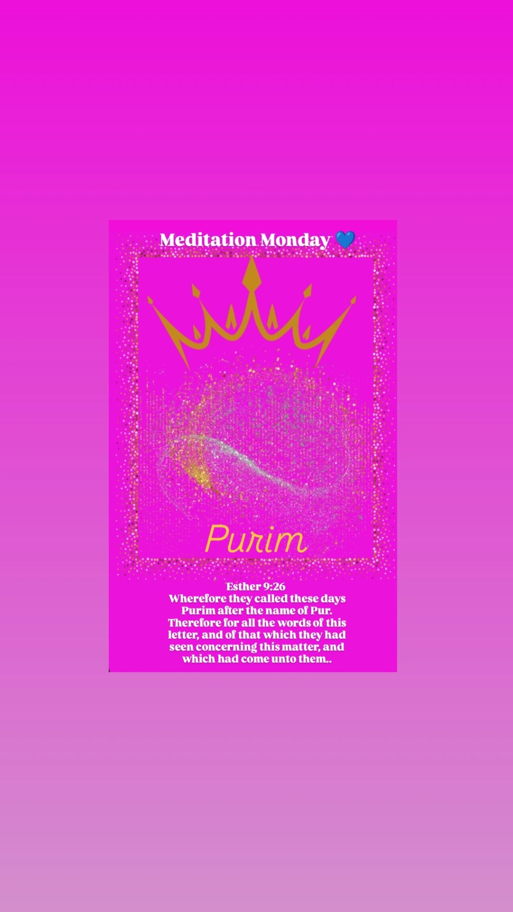 Have a blessed Purim , and praise The Most High for His continued provision, protection and peace in Christ name 💕