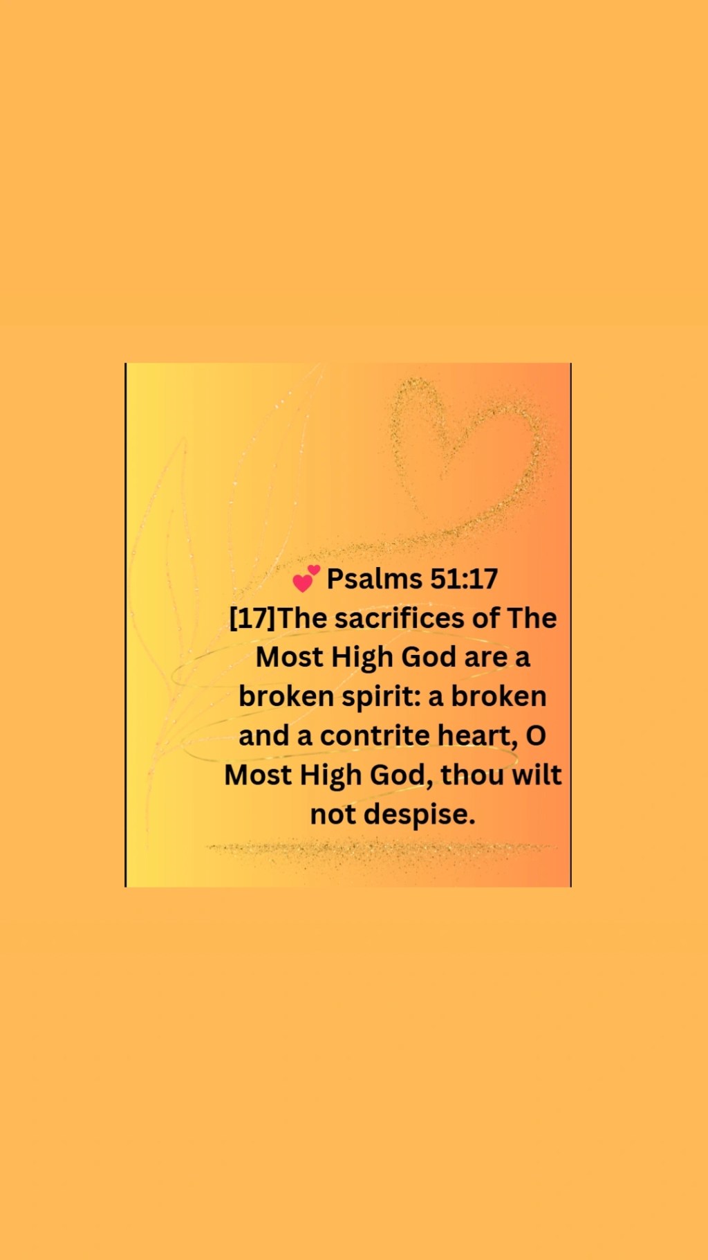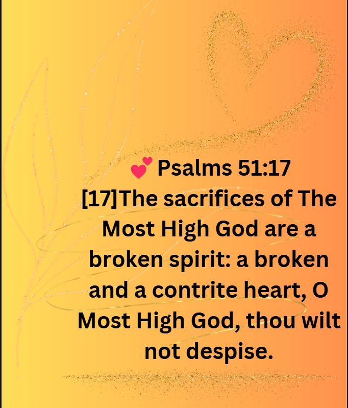 [17]The sacrifices of The Most High God are a broken spirit: a broken and a contrite heart, O Most High God, thou wilt not despise.💕