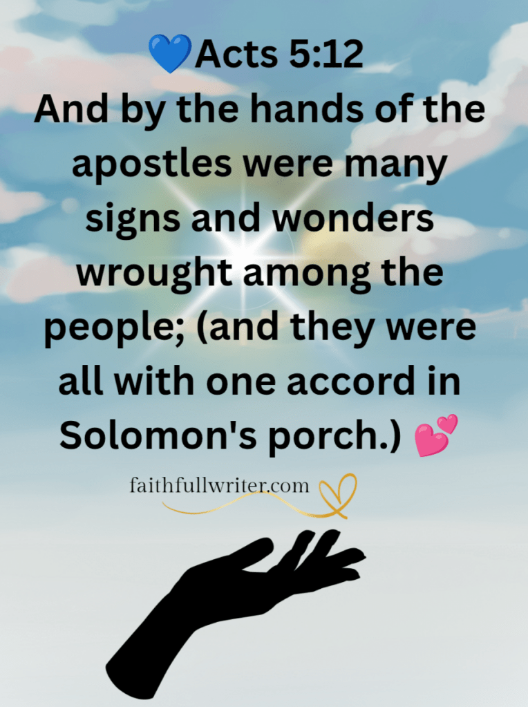 And by the hands of the apostles were many signs and wonders wrought among the people; (and they were all with one accord in Solomon’s porch.💕