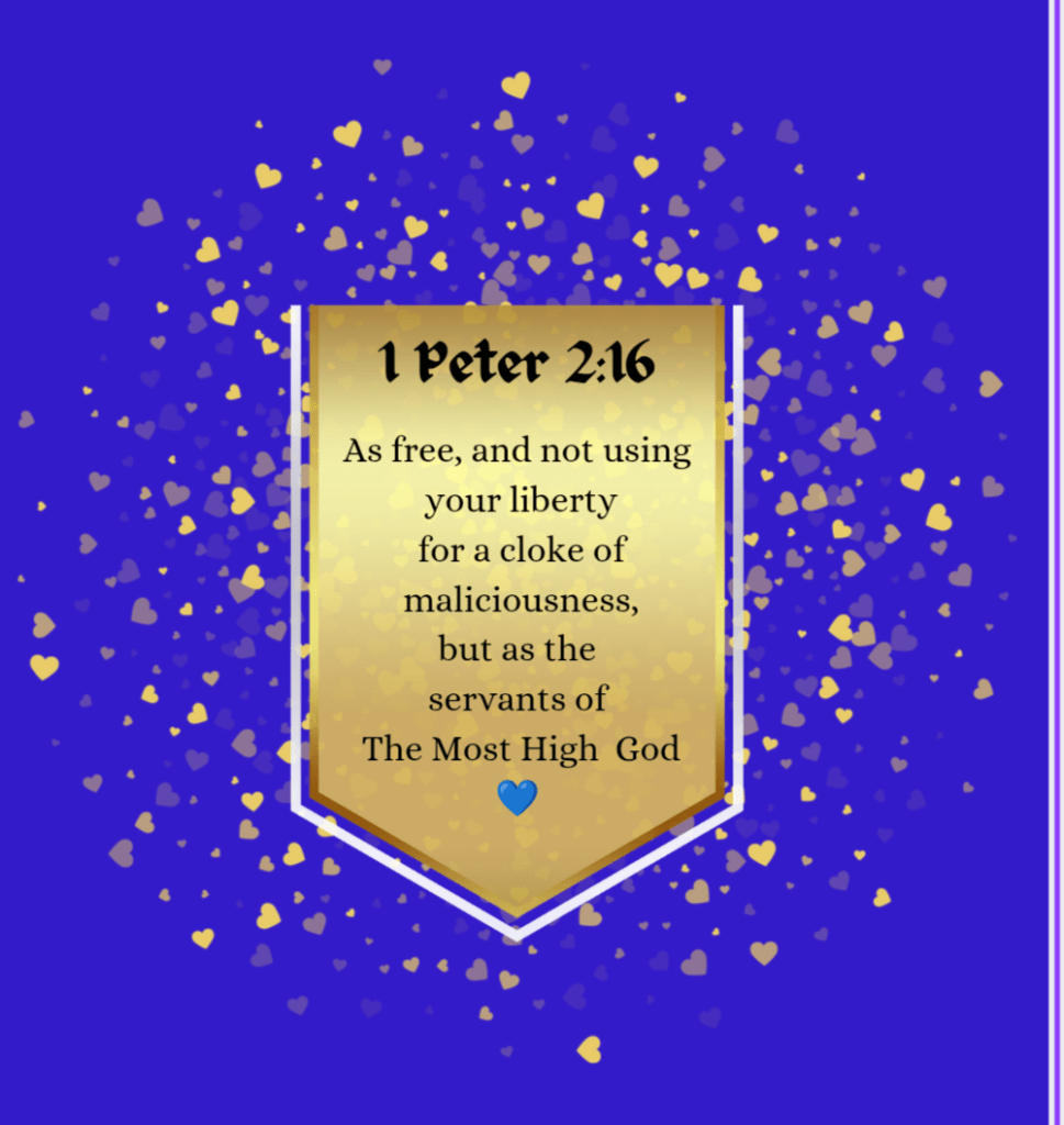 As free, and not using your liberty for a cloke of maliciousness, but as the servants of The Most High God💙