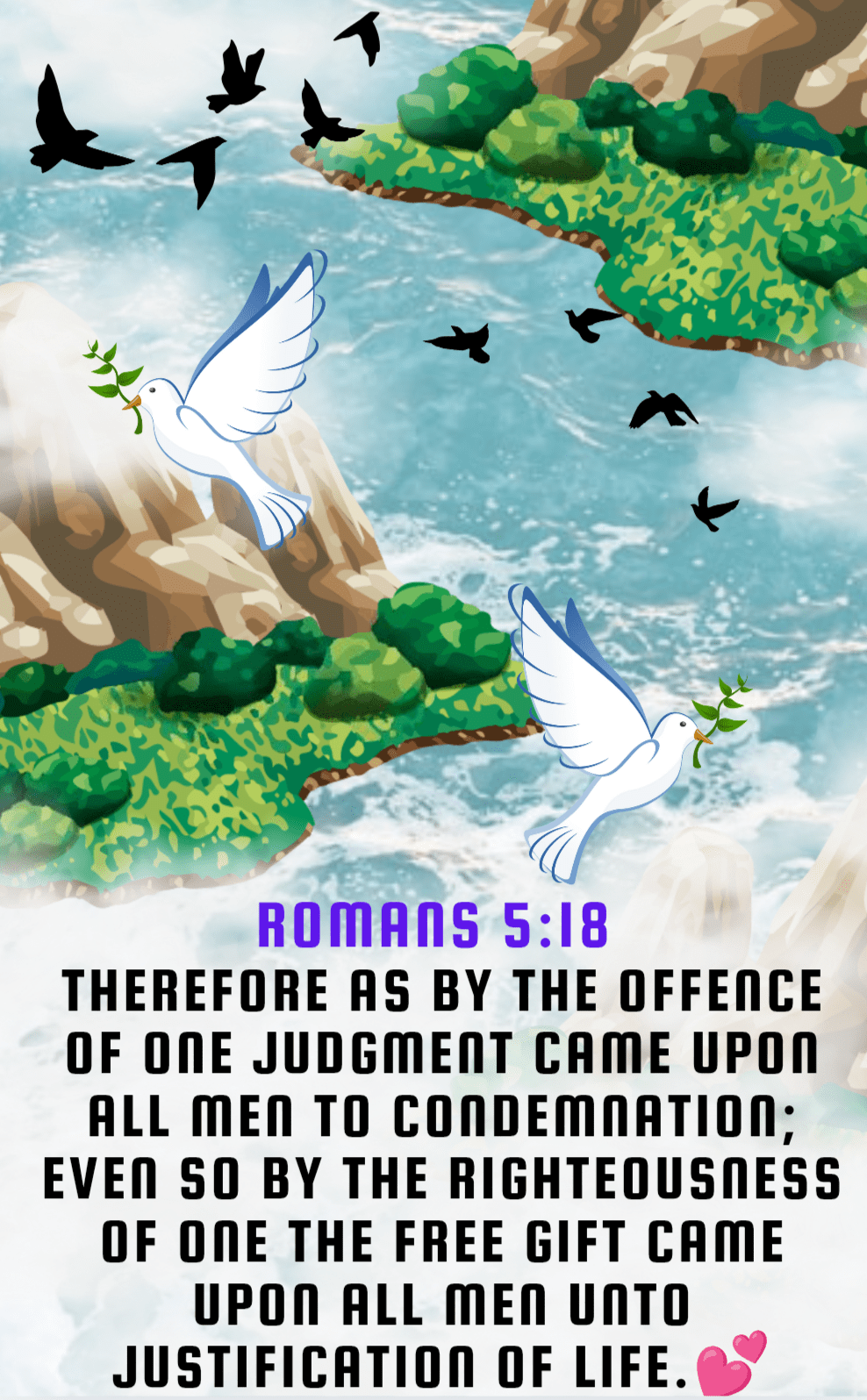 Therefore as by the offence of one judgment came upon all men to condemnation; even so by the righteousness of one the free gift came upon all men unto justification of life.💕