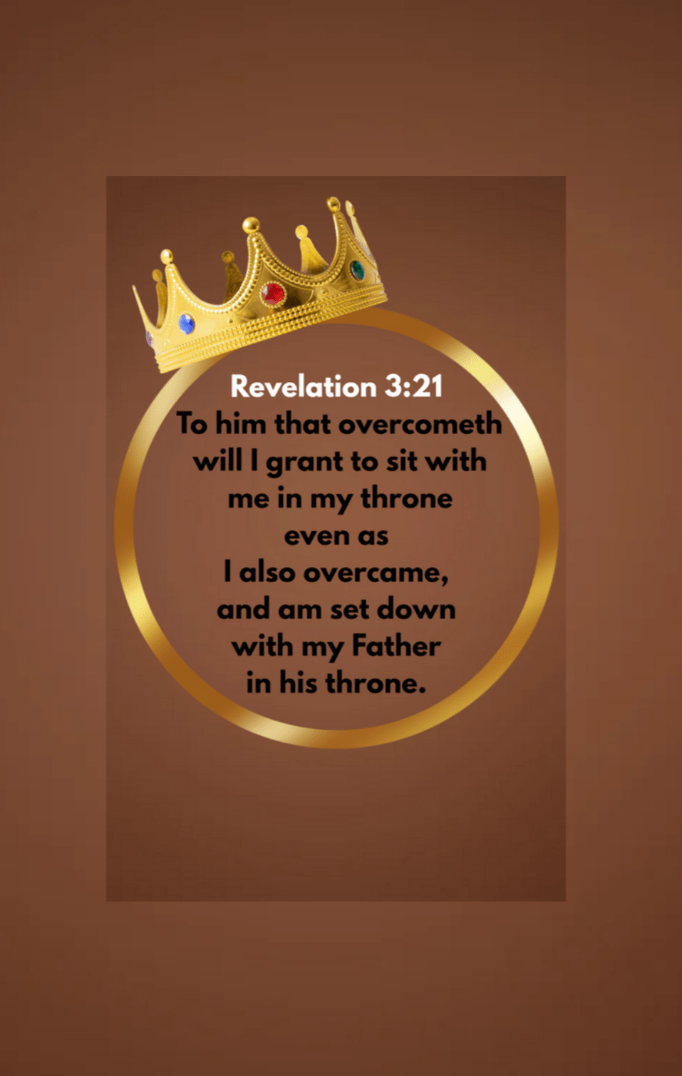 Revelation 3:21 KJV — To him that overcometh will I grant to sit with me in my throne, even as I also overcame, and am set down with my Father in his throne.💕