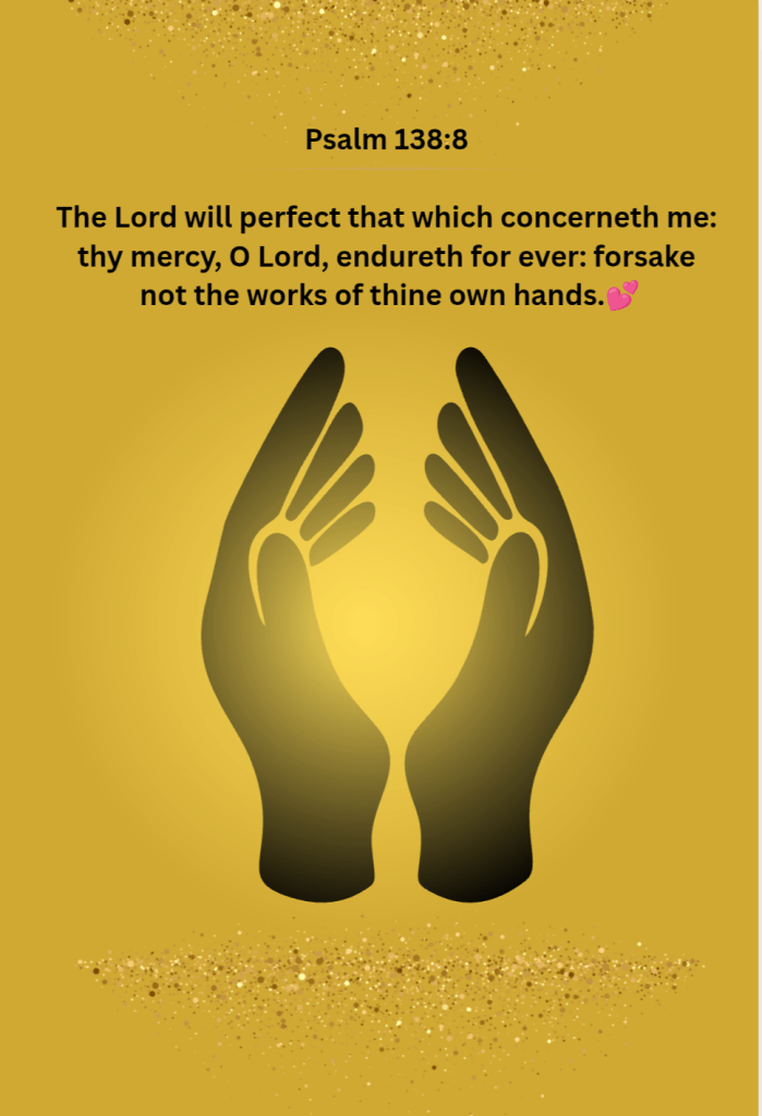 The Lord will perfect that which concerneth me: thy mercy, O Lord, endureth for ever: forsake not the works of thine own hands.💕