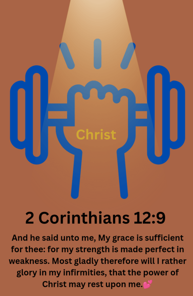 2 Corinthians 12:9 KJV — And he said unto me, My grace is sufficient for thee: for my strength is made perfect in weakness. Most gladly therefore will I rather glory in my infirmities, that the power of Christ may rest upon me.💕