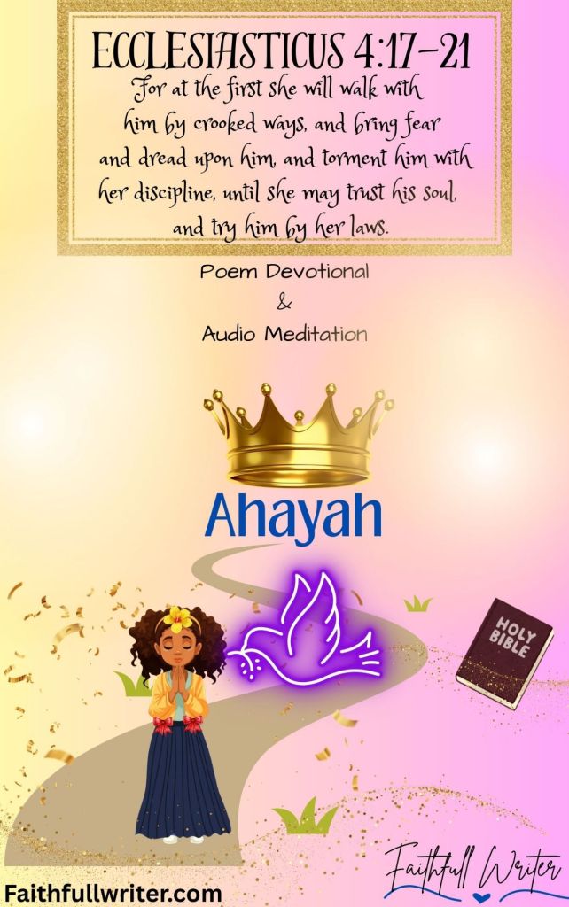[17]For at the first she will walk with him by crooked ways, and bring fear and dread upon him, and torment him with her discipline, until she may trust his soul, and try him by her laws.