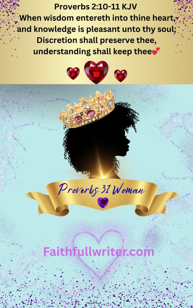 Proverbs 2:10-11 KJV — When wisdom entereth into thine heart, and knowledge is pleasant unto thy soul; Discretion shall preserve thee, understanding shall keep thee💕