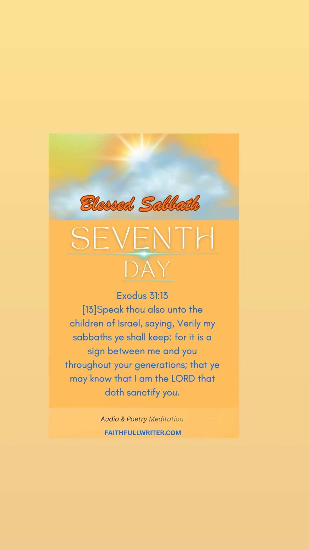 [13]Speak thou also unto the children of Israel, saying, Verily my sabbaths ye shall keep: for it is a sign between me and you throughout your generations; that ye may know that I am the LORD that doth sanctify you.